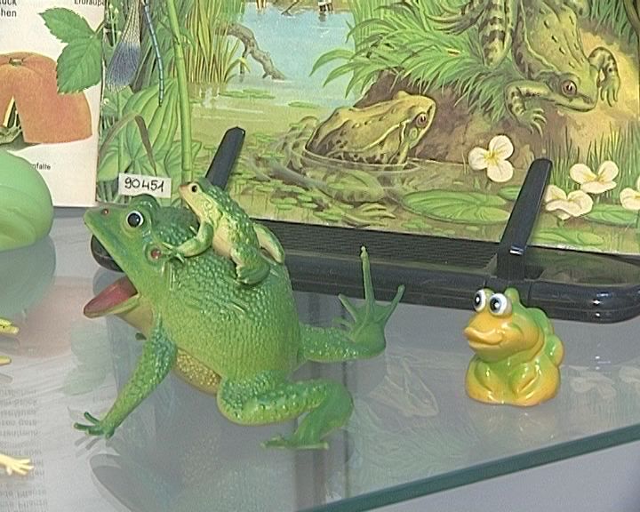 По-древнегречески, оказывается, квакали лягушки в сказке Ганса Христиана Андерсена "Дюймовочка". Это кваканье - прямая цитата из Аристофана. Вообще земноводных любили сказочники во все времена. Вспомним историю про лягушку-путешественницу. Или сказку о царевне-лягушке, сказку братьев Гримм о принце-лягушонке. На выставке есть иллюстрация из этой сказки, написанная рукой Вальтера Крейна. Но особая гордость библиотеки целый альбом иллюстраций Крейна 1899 года издания. И там тоже есть картинки с лягушатами.