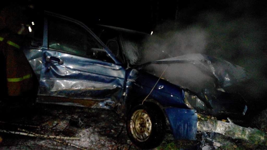 От столкновения автомашина загорелась. Произошла автоматическая блокировка салона. Прибывшие на место происшествия пожарные вовремя потушили огонь и оказали первую помощь пострадавшим. Причины аварии выясняются.