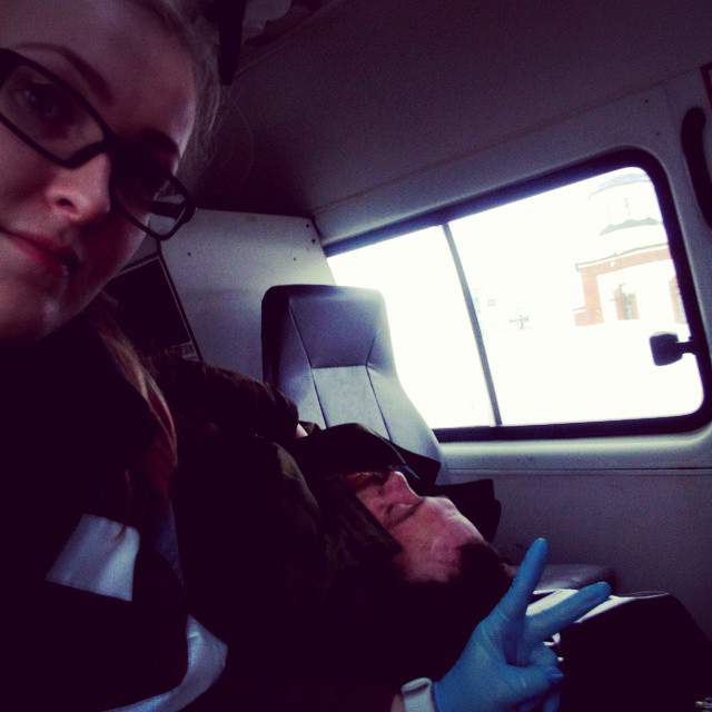В одной из социальных сетей сотрудница КОГБУЗ «Станция скорой медицинской помощи города Кирова» выложила свое фото на фоне пациента, лежащего без сознания на кушетке в машине скорой помощи.