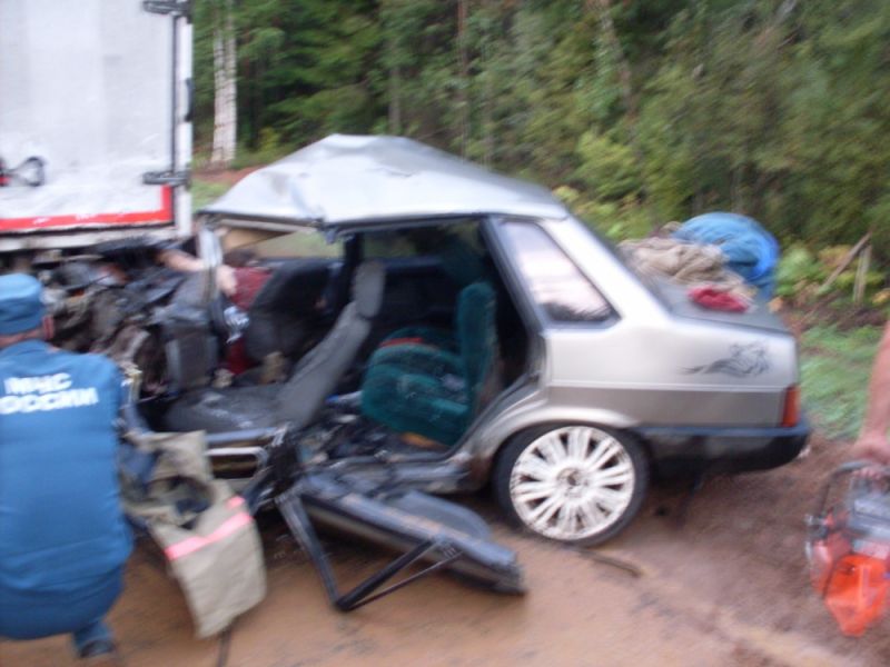 ДТП произошло около 17 часов 23.06.2018 года. На 280-м километре автодороги "Вятка" автомобиль ВАЗ-21099 врезался в грузовой фургон "Isuzu".