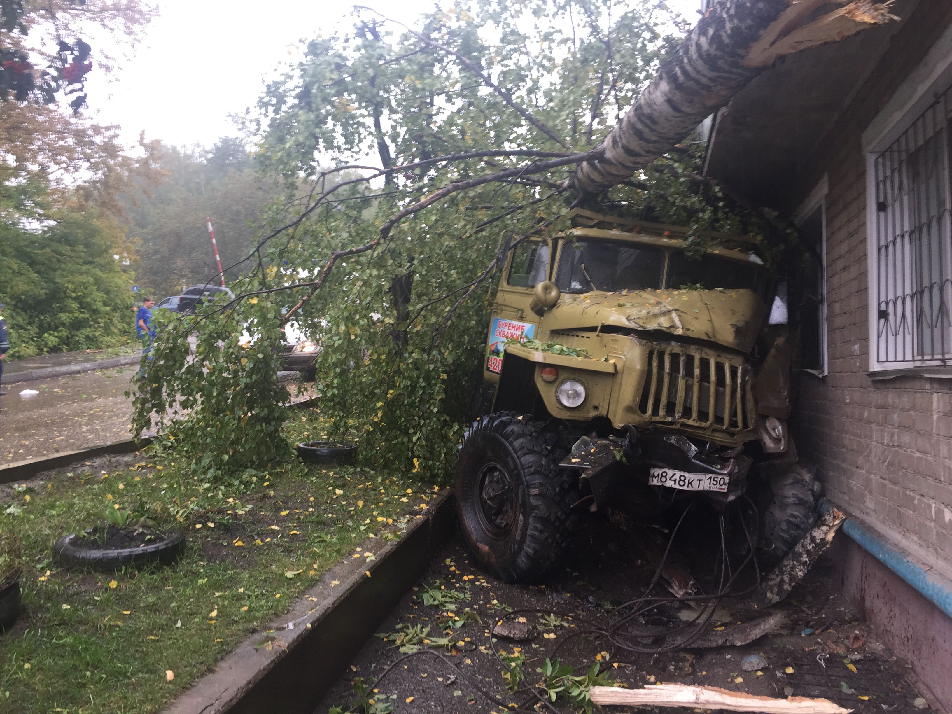 После этого "Урал" выехал за пределы проезжей части, где снес березу и въехал в жилой дом.
