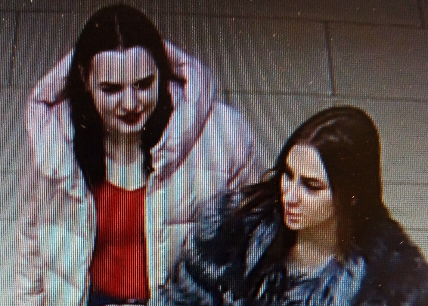 первая - на вид 25 лет, рост 175см., плотного телосложения, волосы окрашены в темный цвет. Была одета в светлый пуховик с капюшоном, красную кофту, синие джинсы, черные ботинки, при себе имела женскую сумку черного цвета.