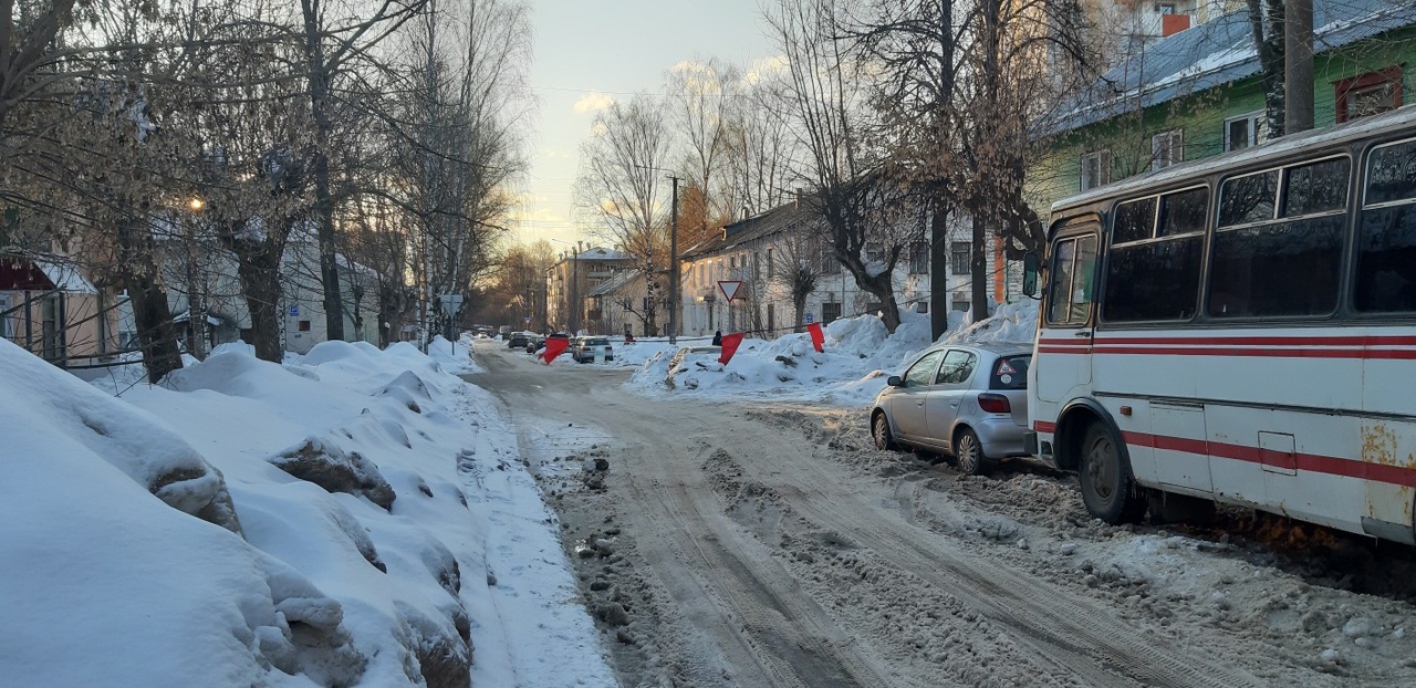 С крыши жилого дома сошла снежная масса. Во время схода "лавины" был поврежден провод, проведенный над дорогой.