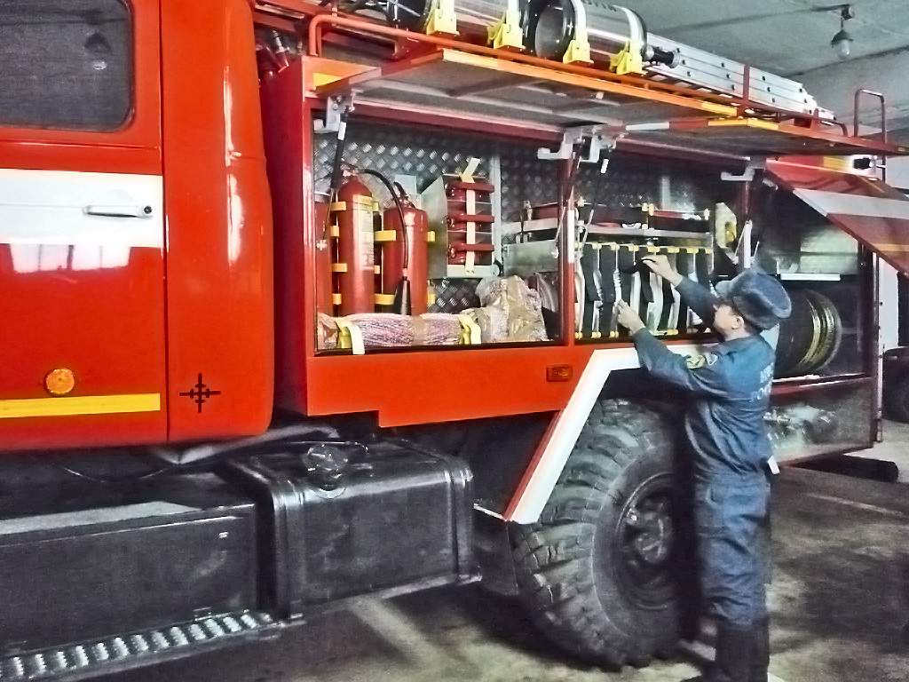 Автоцистерна среднего типа на базе "Урала" оснащена ёмкостью для воды объёмом 3 кубометра и предназначена для доставки личного состава к месту вызова, тушения возгораний и проведения аварийно-спасательных работ.