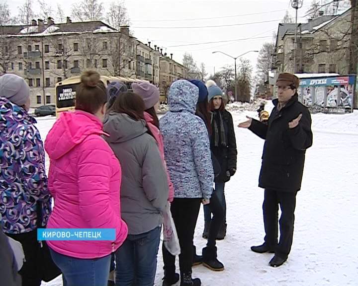 Уникальные подробности об истории города раскрывает Владимир Северюхин. Старший научный сотрудник местного музейно-выставочного центра в ходе обзорной экскурсии делится со школьниками о неизвестных фактах из жизни Кирово-Чепецка.
