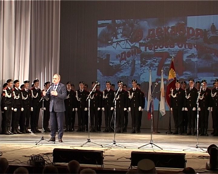 Парадный расчет под аплодисменты сверстников и ветеранов входит в зал. Отбор был жесткий. Из ста воспитанников военно-патриотических клубов в состав делегации для поездки в Самару было отобрано 55.