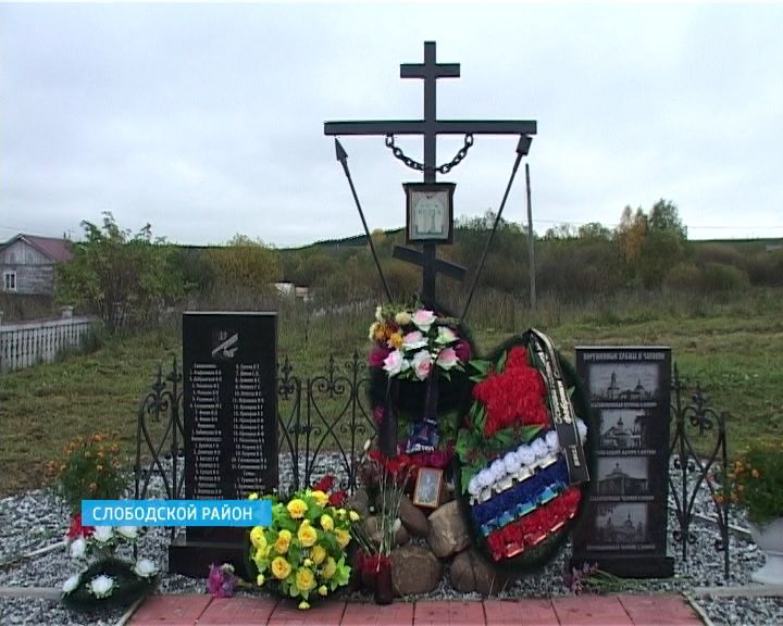 Памятник решили поставить на территории храма во имя Николая Чудотворца. Его построили на месте разрушенной Благовещенской церкви. Сначала это была часовня, а потом здесь установили иконостас. Храм хоть и маленький, но действующий. К тому же, каждый год мимо святыни проходит Великорецкий крестный ход.