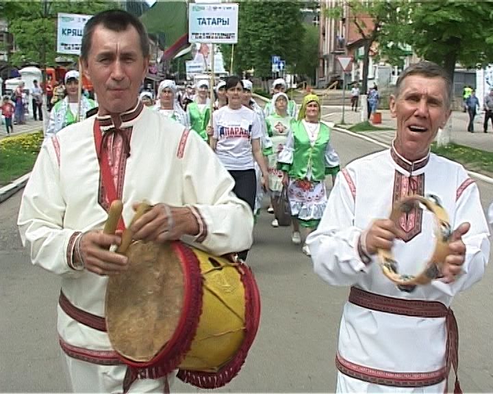 С флагами республик и государств, в национальных костюмах прошествовали представители 20 диаспор: азербайджанской, армянской, дагестанской, марийской, татарской, удмуртской и других, и это еще не всё, фестивалю есть, куда расти: в Кировской области живет порядка 100 различных национальностей.