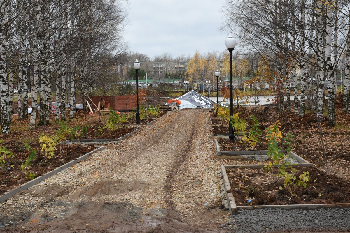 Недавно на территории парка было высажено более 300 деревьев и кустарников, в том числе 20 голубых елей сорта «Ель колючая Глаука Глобоза».