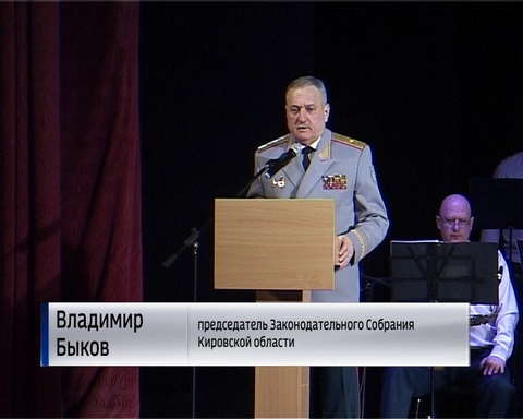 Ярким акцентом праздника стало выступление эстрадного коллектива "Дети солнца" с композицией "Наша армия", где детям подпевали депутаты кировской городской думы и активные члены областной организации ветеранов "Боевое братство", одетые в военный камуфляж, с медалями и орденами на груди. Одним из первых к залу, обратился генерал-майор Владимир Быков, принимавший участие в боевых действиях на Северном Кавказе, во время первой чеченской войны.