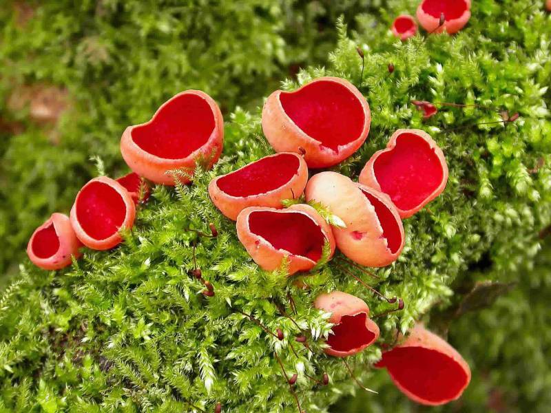 Например, саркосцифы. Разыскать их не составит труда. Ярко-красные, похожие на чашечки, шляпки хорошо видны на зелёном мху. Растут они повсеместно: возле дорог, тропинок, на опушках и в глубине леса. Собранные грибы вымачивают, после чего варят в подсолённой воде со специями и обжаривают с луком.