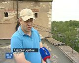«С крыши дома №133 по улице Воровского открывается живописный вид. Смотреть надо не вдаль, а гораздо ближе. Бетонная плита отошла от своего места. Теперь свисает над прохожими. Местные жители заметили это три года назад, сообщили в управляющую компанию. Однако, три года прошло, но ничего не изменилось».