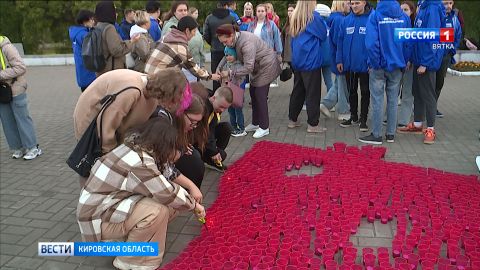 «В парке победы волонтеры сегодня зажгут десять тысяч свечей. Помимо силуэта Григория Булатова с красным знаменем здесь огнем воспылает надпись "Киров помнит"».
