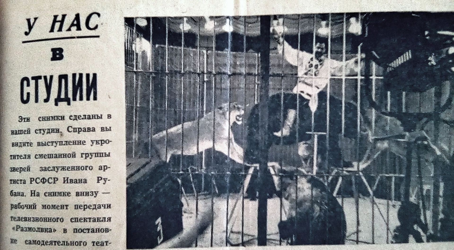Нина Павловна вспоминает: «До 1962 года все передачи велись из 100-метрового павильона. Передвижной телевизионной станции еще не было. А хотелось показать как можно больше. Однажды даже решились показать цирковое представление с участием зверей. В студии было поставлено металлическое ограждение. Животных привезли в ящиках и контейнерах. Около ограждения стояли телекамеры, прожекторы, а также рабочие с пожарными брандспойтами. Непривычные к такой обстановке львы, медведи и другие животные вели себя неспокойно».