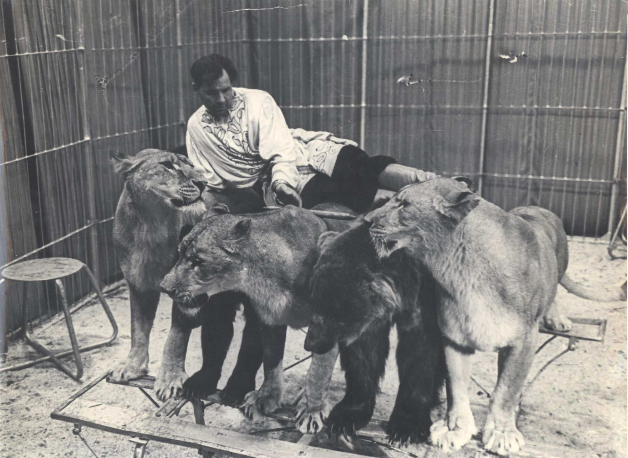Потом на студии долго рассказывали случай, как один из львов бросился на телекамеру. Стоящий оператор забыл, что есть ограждение (он его не видел через объектив), а лев в видоискателе камеры несся прямо на него, оператор инстинктивно отпрянул и упал за камеру.