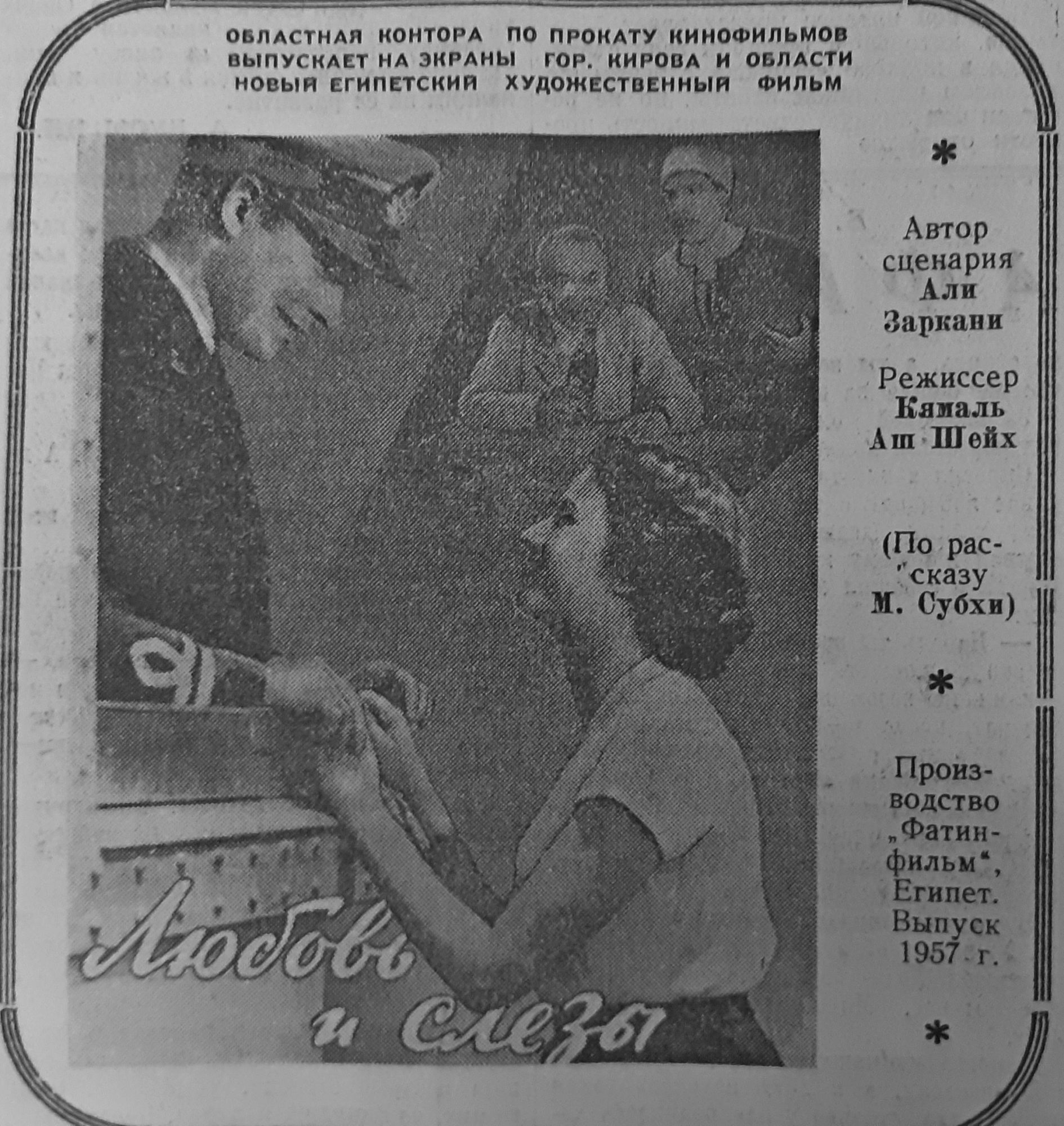 Кинотехник Юрий Веретенников зарядил в проектор фильм-мюзикл «Белая акация». О начале новой эпохи зрителям в первом эфире рассказал начальник дирекции телецентра Анатолий Стародубцев: «Завершается труд многих людей, который был в центре внимания всех кировчан в последнее время. В ближайшее время кировский телецентр начнет свои передачи, которые смогут смотреть не только жители города, но и близлежащих районов в радиусе 50–60 км».