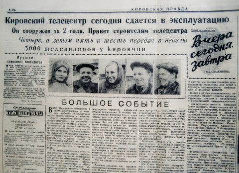 22 июля 1958 года в день приема телецентра в эксплуатацию Кировская телестудия стала 25 -й в СССР областной студией, начавшей регулярное телевещание.