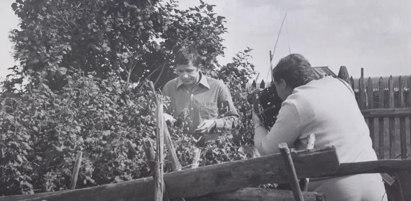 На этом кадре мы видим двух кинооператоров кировской студии: слева Анатолий Лапухин, справа Алексей Крысов. Фильм снимался на кинопленку 35 мм, качество изображения не уступало фильмам Центрального телевидения. Эта документальная картина могла демонстрироваться не только по телевидению, но и в кинотеатрах на всесоюзных кинофестивалях!
