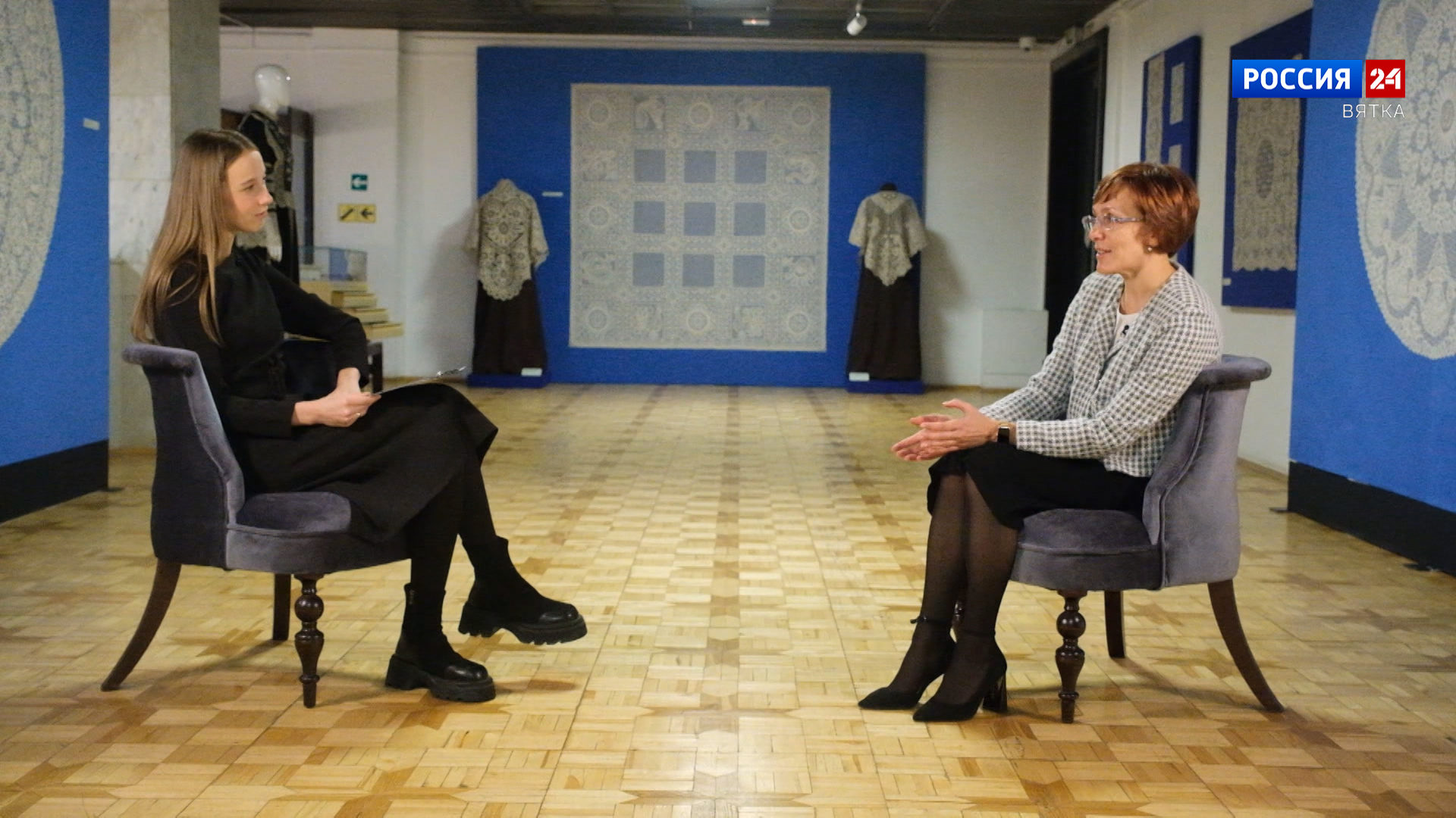 «Морозное кружево», «нетающий иней» - в Вятском художественном музее начала работу выставка кружевных изделий ХХ-ХХІ веков из собрания Вологодского государственного музея-заповедника. В экспозицию вошло более 80 изделий кружевоплетения - панно, скатерти, салфетки, пелерины и манто. Подробности в нашем актуальном интервью с генеральным директором Вологодского музея-заповедника Юлией Евсеевой.