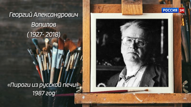 Георгий Александрович Вопилов (1927- 2018). «Пироги из русской печи» 1987 год.Композиция натюрморта «Пироги из русской печи» ясна, что позволяет увидеть точность и смелость рисунка, соотношений пластических масс, цветовых пятен, естественная красота предметов возводится в ранг драгоценности.
