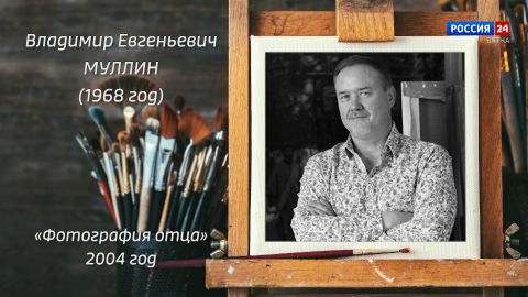 Владимир Евгеньевич Муллин (1968 год). «Фотография отца» 2004 год. Перед зеркалом раскрытый этюдник, палитра, кисти. Художник и сын человека на фотографии, будто рассказывает ушедшему отцу о своей жизни.