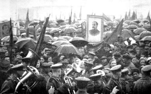 9 мая в Кирове шел снег с дождем, но на площадь у театра пришли более пятидесяти тысяч человек!