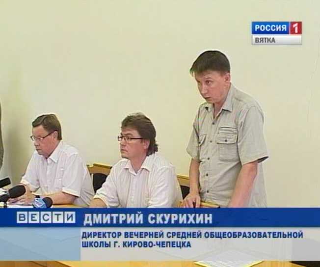 ДМИТРИЙ СКУРИХИН, ДИРЕКТОР ВЕЧЕРНЕЙ СРЕДНЕЙ ОБЩЕОБРАЗОВАТЕЛЬНОЙ ШКОЛЫ г. КИРОВО-ЧЕПЕЦКА: «По административно - территориальному признаку работы на конкурс были представлены учителя из 28 муниципальных образований. Большое количество претендентов из Кирова и Кирово-Чепецка -21. Из Омутнинского района -4, Кирово-Чепецкого- 4, Верхнекамского - 4, по 3 из Зуевского Даровского, Лузского района, по 2 претендента из 10 муниципальных образовательных учреждений».