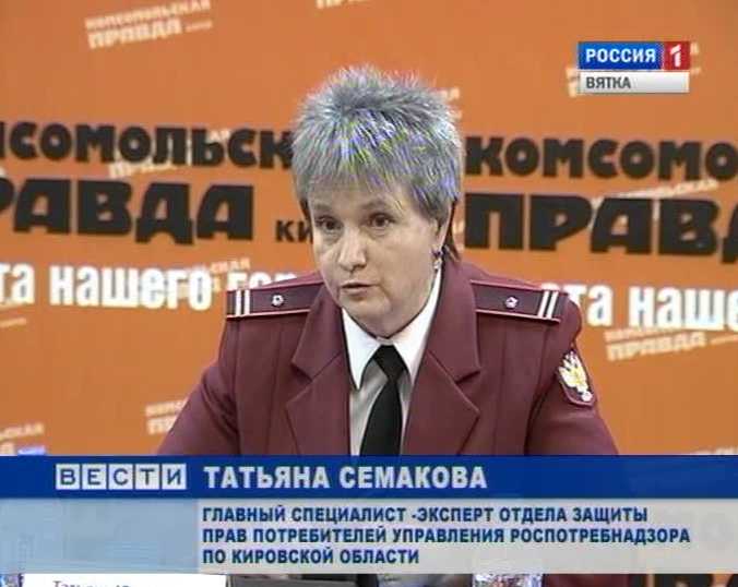 ТАТЬЯНА СЕМАКОВА, ГЛАВНЫЙ СПЕЦИАЛИСТ -ЭКСПЕРТ ОТДЕЛА ЗАЩИТЫ ПРАВ ПОТРЕБИТЕЛЕЙ УПРАВЛЕНИЯ РОСПОТРЕБНАДЗОРА ПО КИРОВСКОЙ ОБЛАСТИ: «В первую очередь подойдите к продавцу, он должен отвечать за тот товар, который продает, он должен этот вопрос отрегулировать».