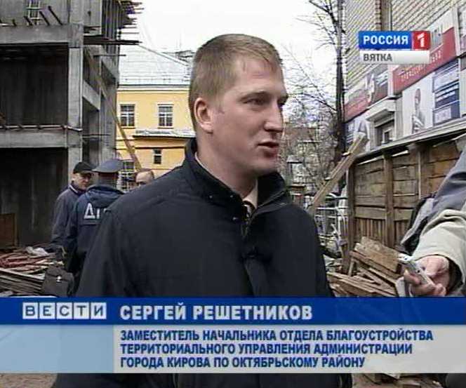 СЕРГЕЙ РЕШЕТНИКОВ ЗАМЕСТИТЕЛЬ НАЧАЛЬНИКА ОТДЕЛА БЛАГОУСТРОЙСТВА ТЕРРИТОРИАЛЬНОГО УПРАВЛЕНИЯ АДМИНИСТРАЦИИ ГОРОДА КИРОВА ПО ОКТЯБРЬСКОМУ РАЙОНУ: «На данной стройке нет ограждений, и не убирается грязь при выезде из ворот».