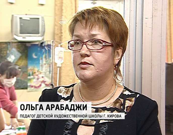 ОЛЬГА АРАБАДЖИ, ПЕДАГОГ ДЕТСКОЙ ХУДОЖЕСТВЕННОЙ ШКОЛЫ г. КИРОВА: «Ребята есть очень талантливые, был один мальчик, который с большим мастерством делал практически ювелирные работы по лепке. Его уже выписали, мы очень этому рады».