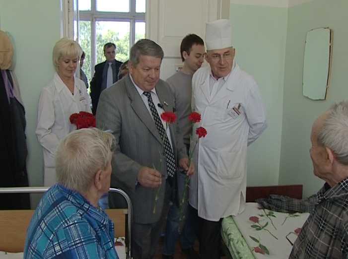 В праздничные дни Председатель областного Законодательного Собрания Алексей Ивонин пришел поздравить пациентов госпиталя ветеранов войн.