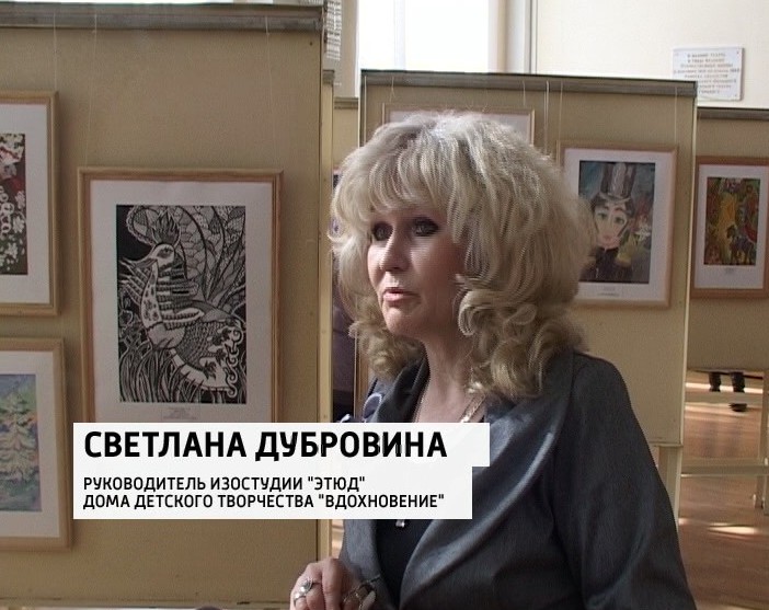 СВЕТЛАНА ДУБРОВИНА, РУКОВОДИТЕЛЬ ИЗОСТУДИИ "ЭТЮД" ДОМА ДЕТСКОГО ТВОРЧЕСТВА "ВДОХНОВЕНИЕ": «Не секрет, что наши дети не так много читают и не часто ходят в театр, и эта выставки призвана поменять отношение детей к театру и книге».