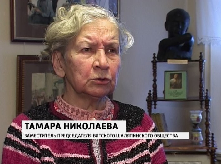 ТАМАРА НИКОЛАЕВА, ЗАМЕСТИТЕЛЬ ПРЕДСЕДАТЕЛЯ ВЯТСКОГО ШАЛЯПИНСКОГО ОБЩЕСТВА: «Вот здесь скульптура Аронсона, который бывал в Вятке, и семья подарила эти скульптуры художественному музею, с ним дружил, Аронсон его лепил, в Пенатах у Репина загуливали по неделям, и на коньках катались, и позировали друг другу, лепили, было торжество искусства».
