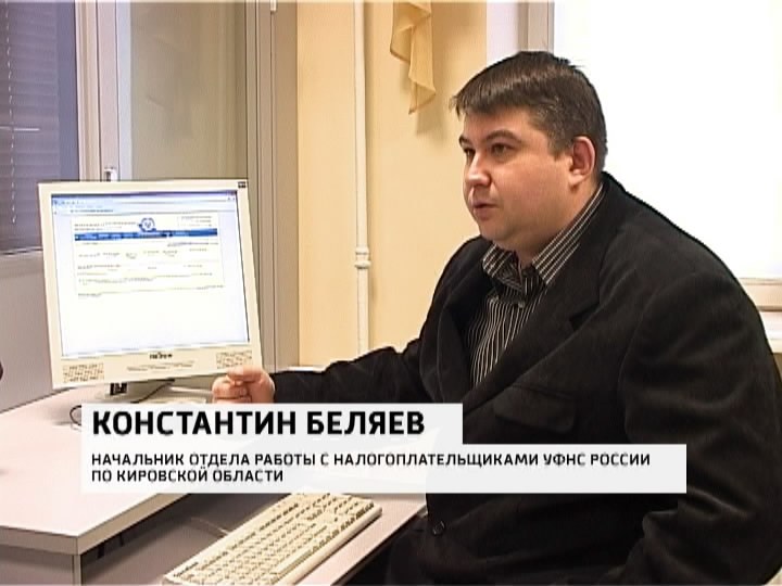 КОНСТАНТИН БЕЛЯЕВ, НАЧАЛЬНИК ОТДЕЛА РАБОТЫ С НАЛОГОПЛАТЕЛЬЩИКАМИ УФНС РОССИИ ПО КИРОВСКОЙ ОБЛАСТИ: «Скоро здесь появится и возможность сдачи отчетности, скачать программу, заполнить, программа проверит правильность и перешлет инспектору, посещать налоговый орган уже не надо».