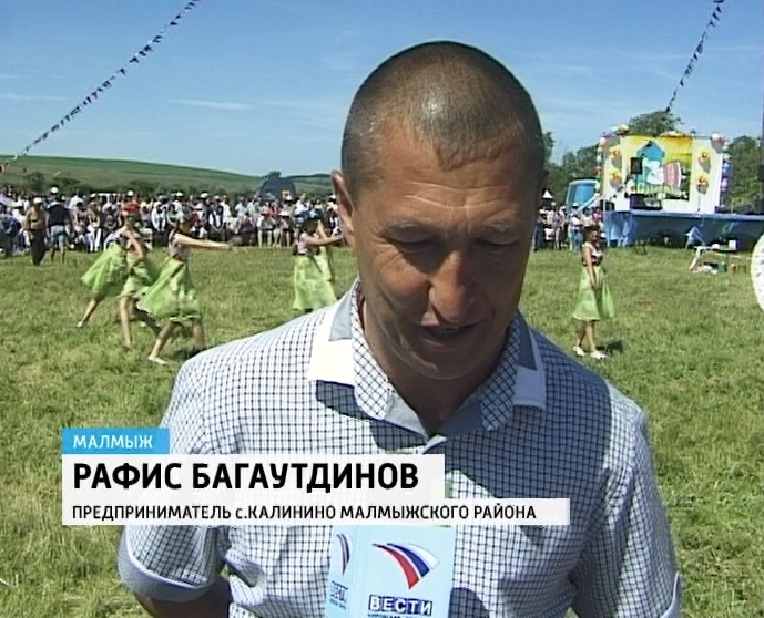 Сабантуй- 2013РАФИС БАГАУТДИНОВ, ПРЕДПРИНИМАТЕЛЬ с. КАЛИНИНО МАЛМЫЖСКОГО РАЙОНА: «Мы начали с простых русских пород - русских разъездных, начинали скачки с них. На сегодняшний день имеем чистокровных английских лошадей - в районе, наверное, у нас уже 5 лошадей таких есть. Соревнуемся, участвуем во Всероссийских скачках».