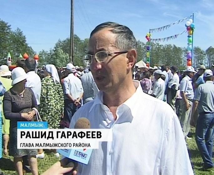 Сабантуй- 2013РАШИД ГАРАФЕЕВ, ГЛАВА МАЛМЫЖСКОГО РАЙОНА: «Праздник Сабантуй - это праздник плуга. Мы сегодня отдаём дань благодарности труженикам земли. Мы, в основном, сохранили наши хозяйства, там у нас работают очень трудолюбивые люди. И сегодня мы подводим итоги их работы. Это добрая традиция жителей Малмыжского района, и я не подразделяю их на русских, татар, марийцев, удмуртов - это общенациональный Малмыжский праздник».