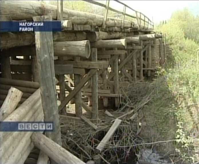 Сегодня на территории Нагорского района 10 деревянных мостов и практически каждый представляет реальную угрозу для жизни водителей и пассажиров. Очередная авария на одном из мостов, которая произошла в конце прошлой недели, вновь напомнила о былых трагедиях и стала поводом для опасений жителей района. В том, что эти опасения неслучайны, убедилась и наша съемочная группа.