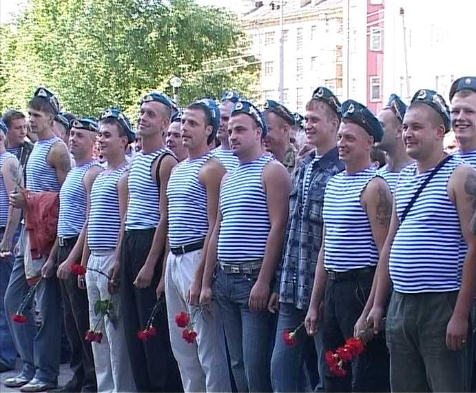 Надо сказать, что десантников к филармонии пришло относительно немного - меньше батальона, но и в таком численном составе бойцы воздушно-десантных войск могут показать свою силушку молодецкую, хоть во вражеском тылу, хоть во время празднования Дня ВДВ.