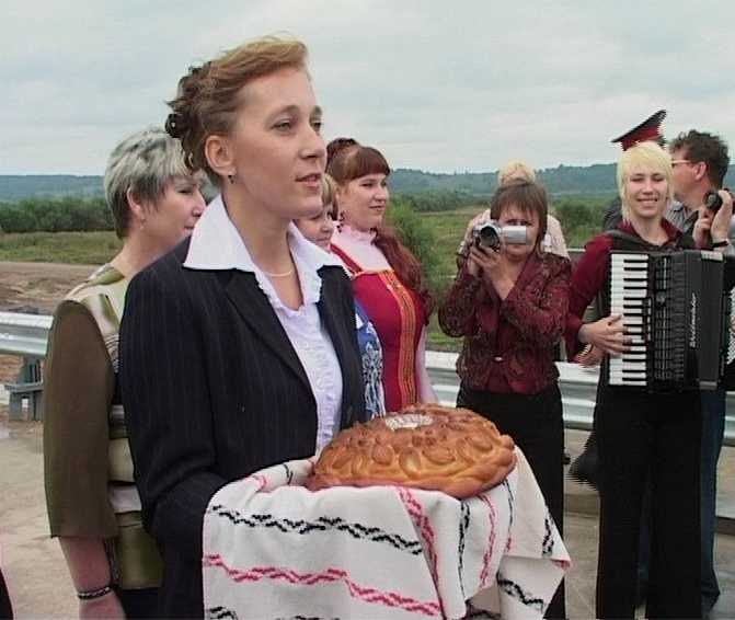Главное протокольное мероприятие было завершено и началось главное событие всего 2008 года для жителей Подосиновского района. 120 миллионов рублей только из областного бюджета, 4 года подготовительных работ, несколько месяцев напряжённой работы специалистов "Мостоотряда 46" и мост через реку Юг торжественно открывают.