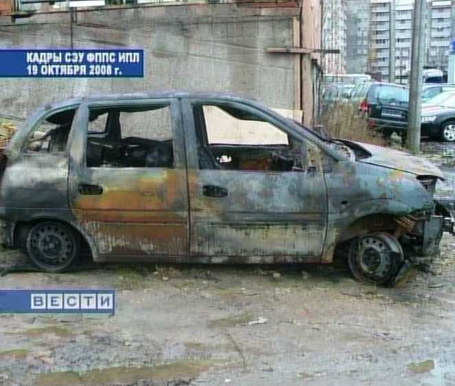 Снова октябрь. Омутнинский район. Эта груда металла корейского происхождения когда-то была иномаркой. Пожар произошел ночью. Владелец уверен - автомобиль подожгли. Эксперты эту причину подтверждают. Сейчас дело рассматривает суд.