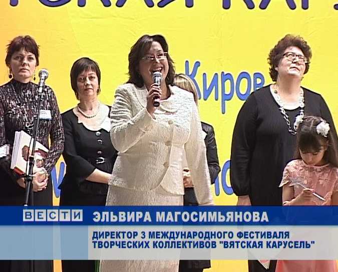 ЭЛЬВИРА МАГОСИМЬЯНОВА, ДИРЕКТОР 3 МЕЖДУНАРОДНОГО ФЕСТИВАЛЯ ТВОРЧЕСКИХ КОЛЛЕКТИВОВ "ВЯТСКАЯ КАРУСЕЛЬ":«У нас сегодня очень большой, дружный зал, я рада всех приветствовать».