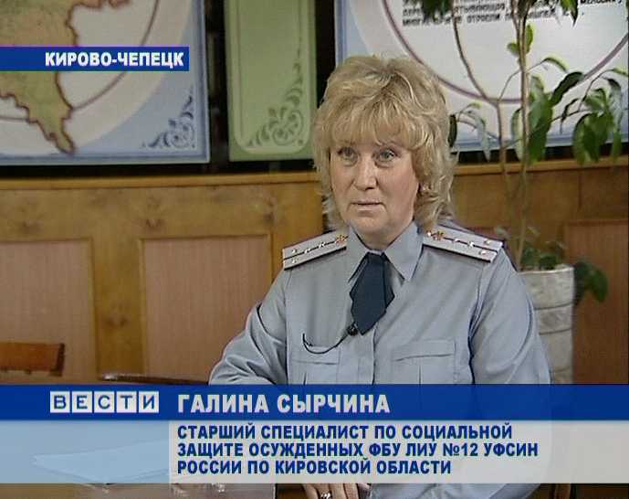 ГАЛИНА СЫРЧИНА, СТАРШИЙ СПЕЦИАЛИСТ ПО СОЦИАЛЬНОЙ ЗАЩИТЕ ОСУЖДЕННЫХ ФБУ ЛИУ №12 УФСИН РОССИИ ПО КИРОВСКОЙ ОБЛАСТИ: «В каждой работе есть трудности. Мы стараемся находить с каждым осужденным общий язык».