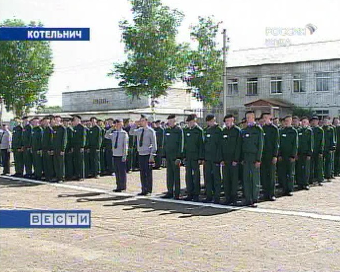 …Каждое утро построение в форме на плацу. Внешне очень похоже на кадетский класс. Но, если присмотреться, то у некоторых беретки надеты так, что больше походят на кепки. В Котельничской воспитательной колонии сейчас находятся 152 подростка.![Выпускной за решёткой Выпускной за решёткой]()