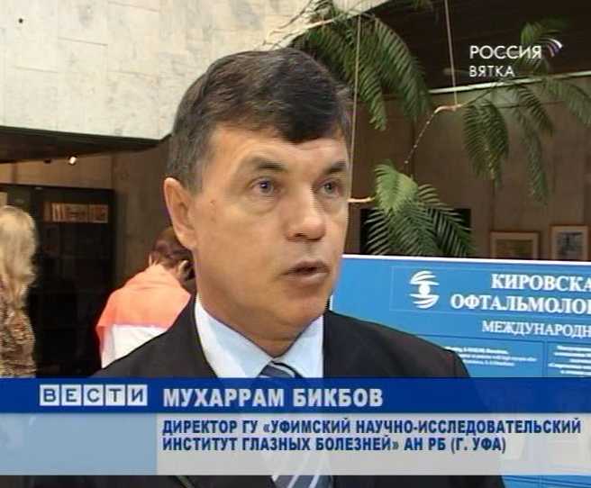 МУХАРРАМ БИКБОВ, ДИРЕКТОР ГУ «УФИМСКИЙ НАУЧНО-ИССЛЕДОВАТЕЛЬСКИЙ ИНСТИТУТ ГЛАЗНЫХ БОЛЕЗНЕЙ» АН РБ (Г. УФА) : «За 10 лет Кировская офтальмологическая больница сделала гигантский шаг в развитии офтальмологии, не только кировской, но и российской».