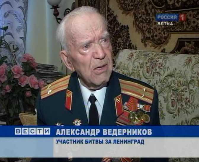 АЛЕКСАНДР ВЕДЕРНИКОВ, УЧАСТНИК БИТВЫ ЗА ЛЕНИНГРАД: «Утром началась артиллерийская колоннада. Стреляли крупнокалиберные пушки, катюши, все составляло такую страсть - земля ходила. 64 минуты длилась артподготовка. После подготовки по всей линии фронта, который тянулся 260 километров, зазвучала музыка, песня "Вставай, страна огромная". После этого поступила команда: « Вперед!», и в течение пяти дней, днем и ночью мы двигались только вперед по болотам, по лесам, по тайным тропам, без сна и отдыха».