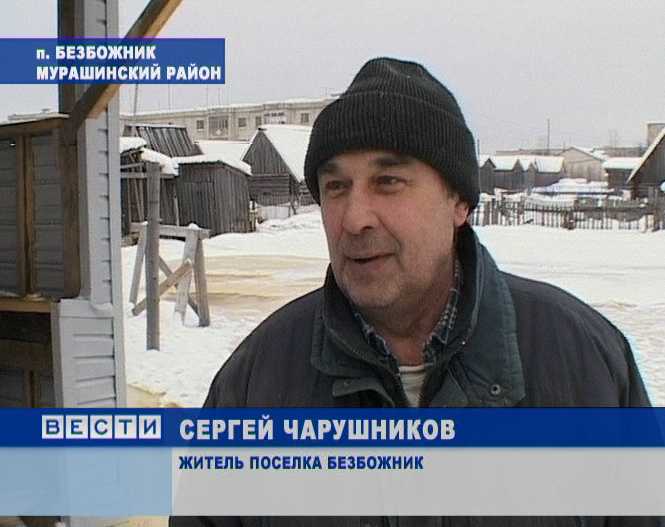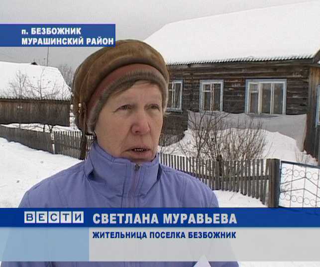Поселок Безбожник Мурашинского района Кировской области находится на грани коммунальной катастрофы. Половина территории поселка затоплена, другая половина - живет без воды. Ничего не меняется с осени 2009 года. Сети - гниют, люди доведены до отчаяния. Терпение лопнуло, когда жители подали иск в прокуратуру.