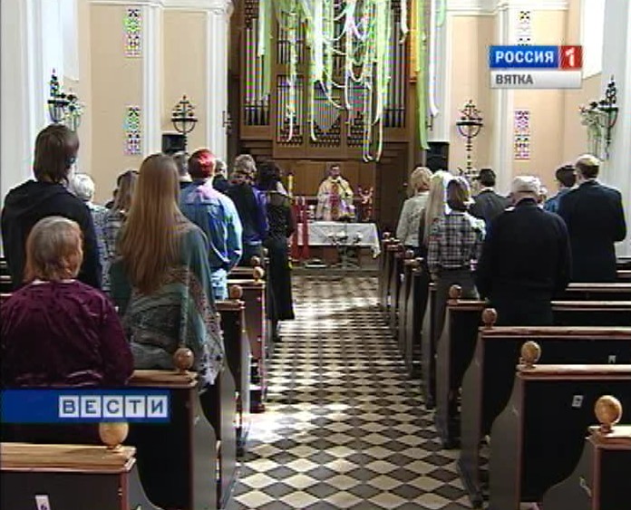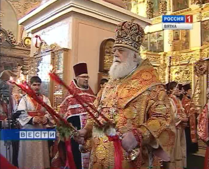 Прихожане завороженно наблюдали за церковными обрядами. В Пасху в Успенском соборе Трифонова Монастыря главные слова праздника звучали снова и снова. Громогласное троекратное "Христос воскресе"- сопровождало всю праздничную службу. Накануне в своем послании пастве митрополит Вятский и Слободской Хрисанф скажет, цитирую: "Крестные страдания, смерть и славное Воскресение Христово стали для нас началом новой жизни. Это тайна любви Бога к своему творению".![Символичное совпадение Символичное совпадение]()