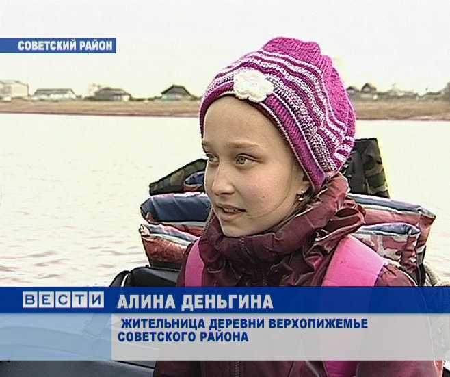 АЛИНА ДЕНЬГИНА, ЖИТЕЛЬНИЦА ДЕРЕВНИ ВЕРХОПИЖЕМЬЕ СОВЕТСКОГО РАЙОНА: «Тут плохо, потому что тут иногда бывают сильные волны, лодку слишком качает. Иногда холодно бывает, руки замерзают, некоторые ездят в кроссовках - замерзают ноги».