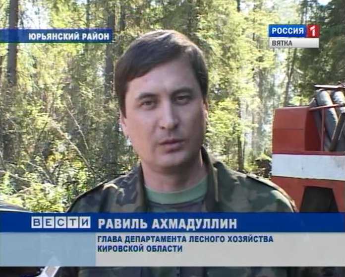 РАВИЛЬ АХМАДУЛЛИН, ГЛАВА ДЕПАРТАМЕНТА ЛЕСНОГО ХОЗЯЙСТВА КИРОВСКОЙ ОБЛАСТИ: «Как видите, здесь пожар низовой, слабой интенсивности. Эффективным методом тушения является применение опрыскивателя».