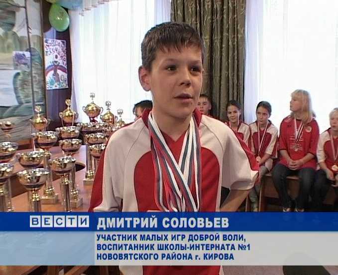 ДМИТРИЙ СОЛОВЬЕВ УЧАСТНИК МАЛЫХ ИГР ДОБРОЙ ВОЛИ, ВОСПИТАННИК ШКОЛЫ-ИНТЕРНАТА №1 НОВОВЯТСКОГО РАЙОНА г. КИРОВА: «Это 2 место у меня за шашки,